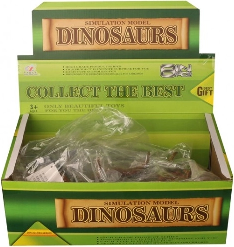 Każdy dinozaur ma około 24–28 cm i idealnie sprawdzi się w pokojach dziecięcych, przedszkolach lub jako dekoracja. Możesz wybrać spośród kilku gatunków – od króla mezozoiku Tyrannosaurus rex po ikonicznego Stegosaura. Figurki dostarczane są w woreczku, opakowanie sprzedażowe po 8 szt. w pudełku.