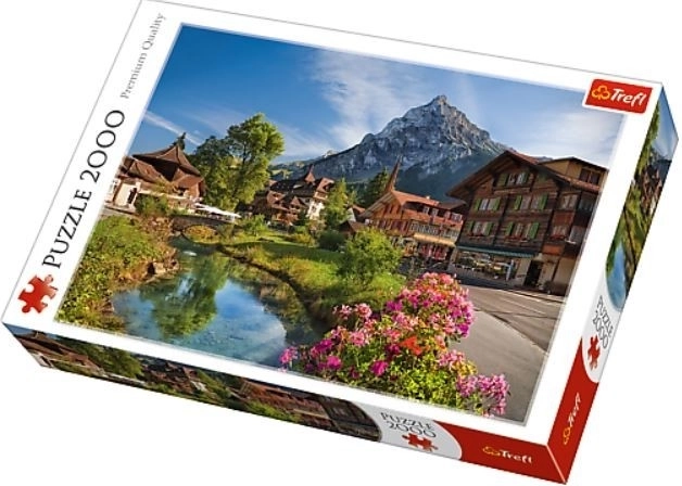Odkryj malowniczą alpejską wioskę z górskim potokiem, kwiatami i majestatycznymi szczytami w letnim słońcu. Ta duża układanka z 2000 elementów zapewni przyjemne wyzwanie nawet doświadczonym miłośnikom puzzli, a po ukończeniu stworzy efektowną dekorację o wymiarach 96 × 68 cm.