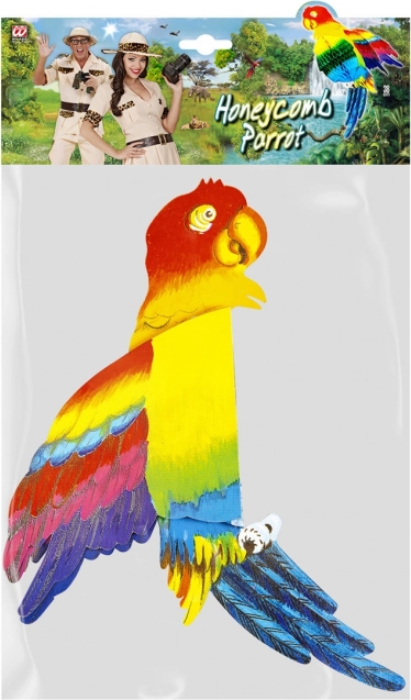Wprowadź do wnętrza egzotyczny klimat dzięki zawieszanej dekoracji papuga o długości 38 cm. Dzięki różnokolorowemu wykończeniu, realistycznemu wyglądowi i plasterkowemu efektowi 3D doskonale ozdobi pokój dziecięcy, imprezę tematyczną oraz salon. Lekki materiał kartonowy ułatwia zawieszenie i przenoszenie, dekoracja jest odpowiednia od 3 lat i spełnia normy bezpieczeństwa.