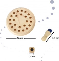 Ta drewniana gra pamięciowa łączy proste zasady z sprytnym treningiem mózgu. Gracze najpierw zapamiętują kolory kołeczków, następnie je odwracają i zgodnie z rzutem kostką szukają właściwego koloru. Punkty zdobywa ten, kto pamięta najlepiej. Gra rozwija koordynację ręka–oko, motorykę małą oraz koncentrację.