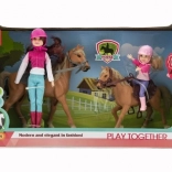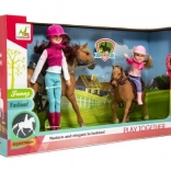 Ten wspaniały zestaw to idealny wybór dla każdego dziecka, które kocha konie i marzy o zostaniu jeźdźcem. W zestawie znajdują się dwie lalki ubrane w strój jeździecki, w tym kaski, gotowe na przygody. Wysokiej jakości i trwałe materiały zapewniają, że zestaw wytrzyma intensywną zabawę.