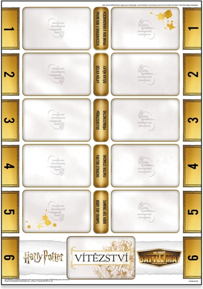 Top Trumps Battle Mat to nowa planszowa odsłona popularnej gry Top Trumps ze świata Harry’ego Pottera. Gra jest w pełni w języku czeskim i idealnie sprawdzi się dla rodzin oraz paczki przyjaciół. Twoim celem jest wygrywać kategorie, zbierać karty i jako pierwszy zwyciężyć w siedmiu bitwach.