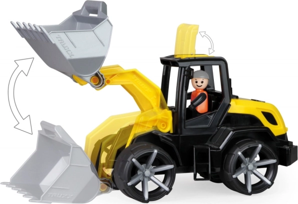 Wszystkie ruchome części ładowarki są w pełni funkcjonalne, co pozwala dzieciom na realistyczną zabawę na placu budowy.