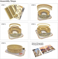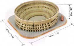 Model jest prawdziwą repliką słynnej areny w Rzymie, jedno z największych dzieł inżynierskich starożytnego świata. Opakowanie zawiera również przewodnik po włoskim Rzymie w języku angielskim. Dzięki wstępnie wyciętym elementom, które łatwo wyłamać z arkusza, można w pełni skoncentrować się na zabawie ze składania bez potrzeby użycia kleju i nożyczek.