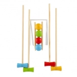 Ciesz się wesołym popołudniem z drewnianym krokietem, który rozwija koordynację i precyzję. Rozmieść bramki zgodnie z załączoną instrukcją i poprowadź piłkę przez wszystkie bramki za pomocą kijów.