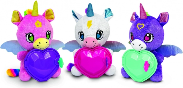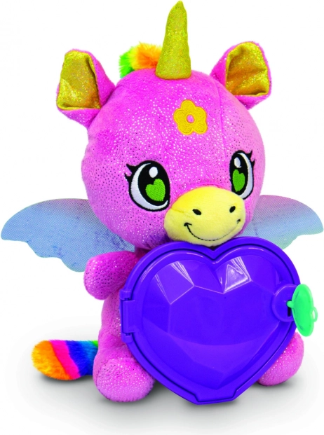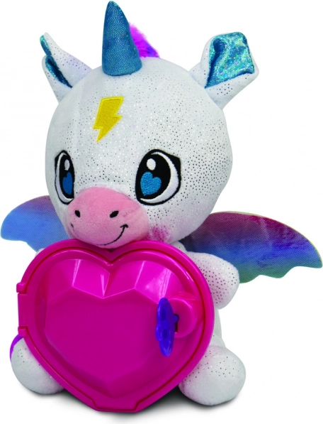 Co znajdziesz w środku: bransoletkę z niespodzianką, pierścionek z niespodzianką i naklejki. Dzieci mogą przechowywać swoje małe skarby w serduszku jednorożca i tworzyć własne tajemnicze opowieści. Pluszowa zabawka jest miękka, bezpieczna i odpowiednia do codziennego przytulania oraz kreatywnej zabawy.