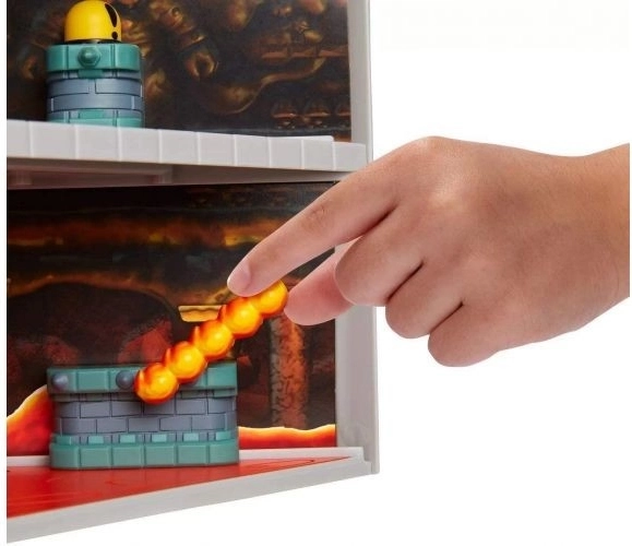 Ten dopracowany w detalach zestaw przenosi kultowy poziom z gier SUPER MARIO prosto do dziecięcego pokoju. Czekają na ciebie ruchome platformy, winda, wirujące ogniste kule oraz dramatyczna zapadnia, która zrzuca Bowsera do „lawy”. Realistyczne efekty dźwiękowe potęgują każdy moment zabawy.