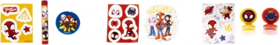 Zawiera różne akcesoria, takie jak naklejki, notesy czy plakaty z motywem Spider-Mana, idealne do codziennego użytku.
