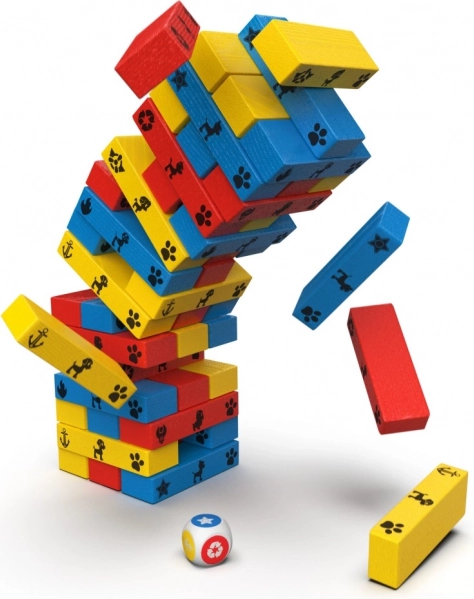Kolorowa gra zręcznościowa z ulubionymi bohaterami ze świata Psi Patrol oferuje proste zasady i sporą dawkę emocji. Gracze na zmianę wyjmują drewniane klocki zgodnie z kolorem wyrzuconym na kostce i odkładają je na szczyt wieży – z każdym ruchem konstrukcja staje się mniej stabilna, a zabawa nabiera tempa.