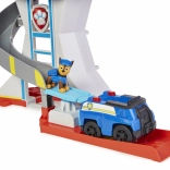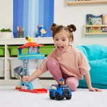 Umieść Chase'a w cywilu na przedniej części windy, a Chase'a-bohatera na tylniej. Podnieś windę i obserwuj, jak Chase w cywilu zmienia się w Chase'a-bohatera. Na szczycie wieży wybierz jedną z 3 dwustronnych kart misji i dowiedz się, co jest zadaniem dnia. Gdy nadejdzie czas na akcję ratunkową, zjedź zjeżdżalnią prosto do policyjnego auta Chase'a i ruszaj do akcji naciskając wyrzutnię aut. Dla jeszcze większej zabawy możesz zbierać kolejne szczeniaki jak Marshalla, Skye i Rubble z ich pojazdami.