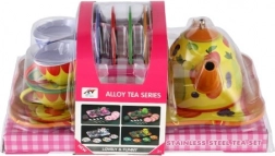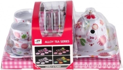 Ten dziecięcy metalowy zestaw do herbaty dostarcza radości z wyimaginowanego serwowania i zabawy towarzyskiej. Zestaw wykonany jest z metalu, dzięki czemu jest solidny, trwały i lekki dla małych rączek. Kolorowe motywy kwiatów, motylków i owoców wspierają kreatywność i wyobraźnię, a taca do serwowania ułatwia przenoszenie i zabawę.