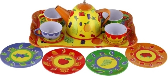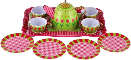 W opakowaniu znajdziesz wszystko, co potrzebne do małej herbatki – czajniczek, filiżanki ze spodkami oraz talerzyki. Zestaw świetnie wspiera rozwój umiejętności społecznych, naukę zasad nakrywania do stołu oraz wspólną zabawę z przyjaciółmi. Naczynia nie są przeznaczone do rzeczywistego przygotowywania ani spożywania napojów.