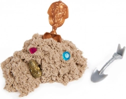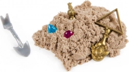 - piasek kinetyczny, tematyczne narzędzia i foremki, ukryte artefakty i skarby