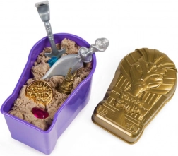 Wykopuj i odkrywaj artefakty, klejnoty oraz sekrety mumii. Każde opakowanie kryje jedną z trzech postaci oraz emocjonujące poszukiwanie złotej monety. Plastyczny piasek przyjemnie trzyma formę i zachęca do nieskończonej kreatywnej zabawy.