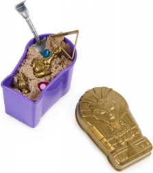 Odkrywaj tajemnice starożytnego Egiptu z Kinetic Sand mini zestaw mumia – w warstwach piasku kinetycznego czekają skarby, ukryte niespodzianki oraz jedna z trzech postaci do odkrycia; nie brakuje też szansy na znalezienie złotej monety i zabawę z dołączonymi narzędziami i foremkami.