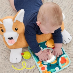 Podkładka na brzuszek w kształcie uroczego pieska oferuje dzieciom trzy różne sposoby zabawy i rozwoju. Idealna do zabawy na brzuszku, siedzenia i zabawy fantazją. Skład zestawu to szeleszczący panel i 3 interaktywne zabawki, które pomagają rozwijać umiejętności motoryczne i stymulują zmysły wzroku, słuchu i dotyku.