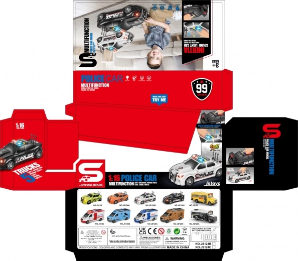 Policyjny samochód ze świetlnym i dźwiękowym efektem.