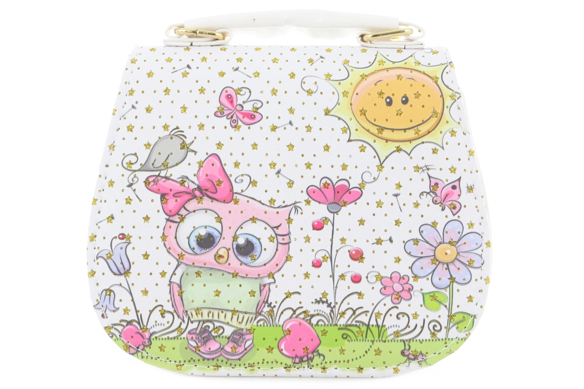 Urocza dziecięca torebka z motywem sowy w białym kolorze ucieszy każdą małą elegantkę. Oferuje kompaktowe wymiary na drobiazgi i jest idealna do codziennego noszenia. Lekka, praktyczna i stylowa propozycja dla dzieci od 3 lat.