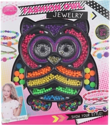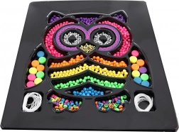 Organizer w kształcie sówki przejrzyście rozdziela kolory i typy koralików, dzięki czemu tworzenie jest łatwe i uporządkowane. Elastyczne sznurki zapewniają wygodne nawlekanie i przyjemne noszenie gotowych ozdób. Zestaw rozwija kreatywność, cierpliwość i motorykę małą dzieci.