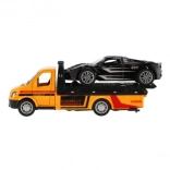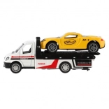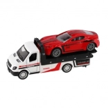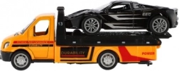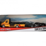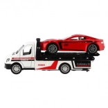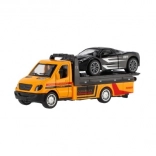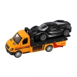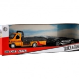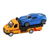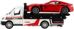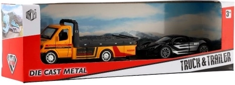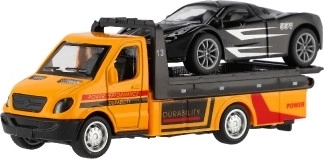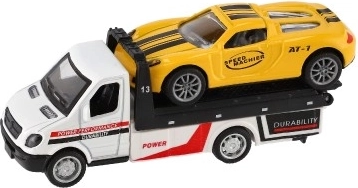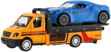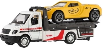 Realistycznie wykonany holownik z załadowanym sportowym autkiem wzbogaci dziecięcą flotę o lubiane auto użytkowe. Dzięki napędowi pull-back wystarczy docisnąć, puścić i patrzeć na akcję – idealne do scenek z miasta, drogi i warsztatu.