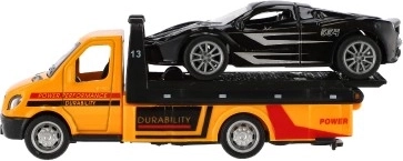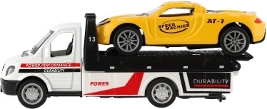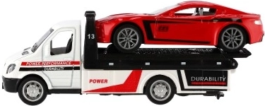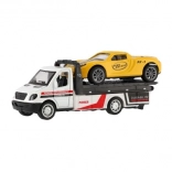 Mały, ale wydajny holownik z autkiem ucieszy każdego małego kierowcę. Dzięki mechanizmowi pull-back pojazdy ruszają żwawo, metalowo–plastikowe wykonanie gwarantuje trwałość i dopracowane detale, a kompaktowa długość 11 cm jest idealna do zabawy w domu i w podróży.