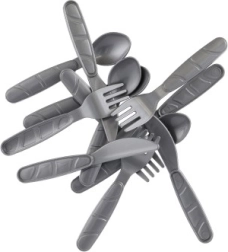 Zestaw talerzyków ze sztućcami uczy dzieci podstaw nakrywania do stołu i wspiera samodzielność oraz małą motorykę.