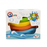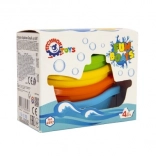 Zestaw zawiera cztery łódeczki w intensywnych kolorach – niebieskim, pomarańczowym, zielonym i żółtym, które można łatwo sztaplować dla prostego przechowywania. Kształt i kolory łódek wspierają dziecięcą wyobraźnię i kreatywność podczas wodnych zabaw.
