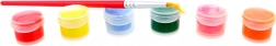 Praktyczne kubeczki z farbami i pędzelek umożliwiają dzieciom łatwe i czyste pokolorowanie dinozaurów na żywe barwy. Zamykane pojemniczki ułatwiają przechowywanie.