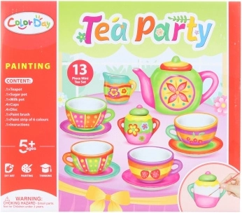 Zaprojektuj i pomaluj swój własny zestaw ceramiczny do herbaty. Zawiera dzbanek, filiżanki z talerzykami, dzbanuszek i cukiernicę, z farbami i pędzlem. Idealny dla kreatywnych dzieci od 5 lat.