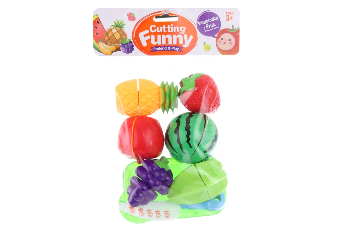 Zabawny, plastikowy zestaw owoców i warzyw do krojenia oferuje dzieciom od 3 lat świetną zabawę w kucharza. Poszczególne części są połączone pośrodku rzepem, dzięki czemu można je wielokrotnie kroić i ponownie łączyć. Wspiera motorykę małą, koordynację ręka–oko oraz rozwija wyobraźnię podczas zabawy w dom. Opakowanie zawiera 14 elementów i świetnie nadaje się na prezent.