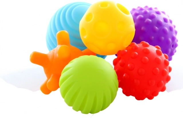 Każda piłeczka ma odmienną powierzchnię – rowkowaną, kropkowaną lub żłobkowaną – co pobudza zmysły i rozbudza ciekawość. Dzięki łatwej pielęgnacji i wytrzymałemu materiałowi doskonale sprawdzą się w codziennej zabawie w domu i w podróży.