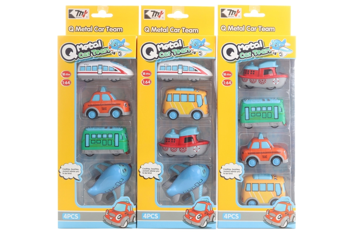 Odkryj zabawny zestaw metalowych pojazdów dla najmłodszych. Opakowanie zawiera 4 różne modele o wielkości ok. 6,5 cm, idealne do małych dziecięcych rączek. Metalowe wykonanie zapewnia trwałość i długą żywotność, a kompaktowe wymiary wspierają motorykę małą i kreatywną zabawę. Odpowiednie dla dzieci od 18 miesięcy.