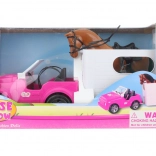 Odkryj kompletny zestaw do kreatywnej zabawy: samochód dla lalek z przyczepą i koniem. Dzięki dużym rozmiarom i wytrzymałemu plastikowi zestaw nadaje się do codziennego użytku w domu i na zewnątrz. Dzieci mogą łatwo załadować konika, wyruszyć na zawody lub na wycieczkę, rozwijając wyobraźnię i małą motorykę.