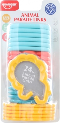 Dzięki 24 elementom łatwo stworzysz dłuższy łańcuch, przymocujesz ulubione zabawki lub smoczek i utrzymasz je zawsze w zasięgu ręki. Trwały plastik łatwo się czyści i jest odpowiedni dla najmłodszych dzieci.
