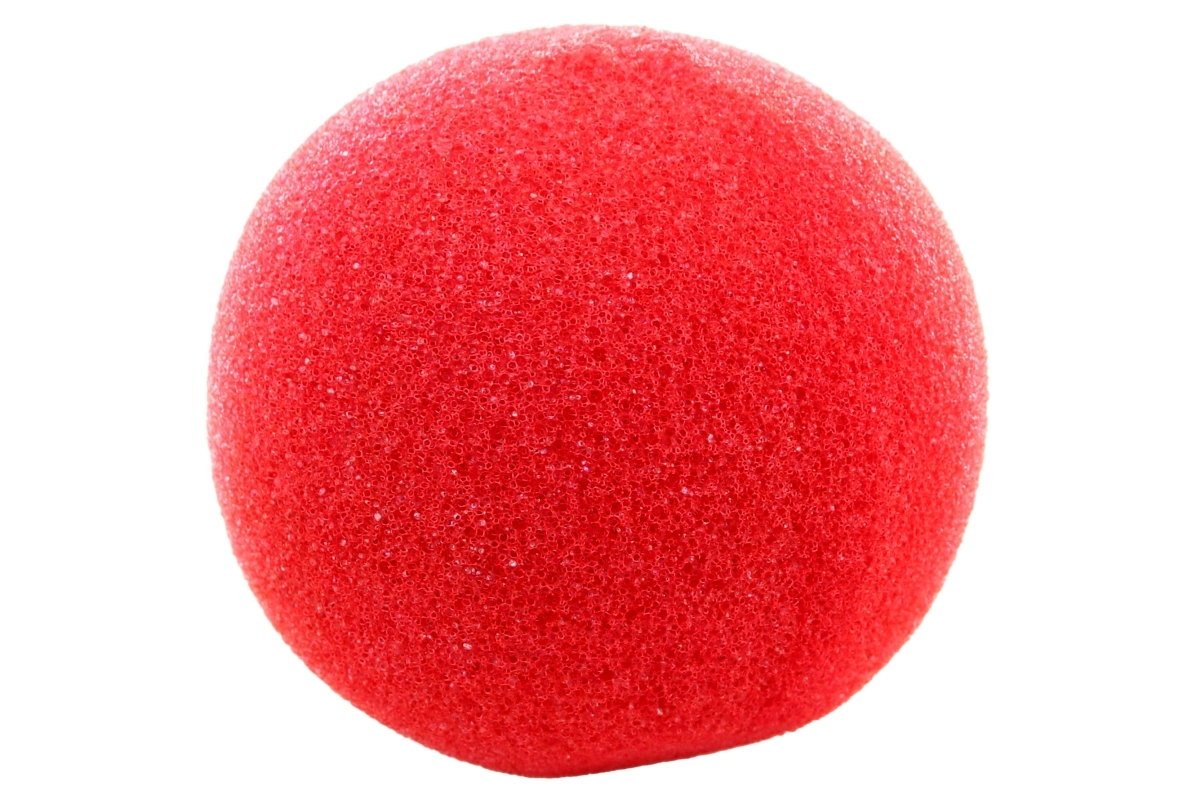 Miękki piankowy nos w intensywnie czerwonym kolorze, łatwy do założenia, lekki i po ściśnięciu wraca do kształtu.