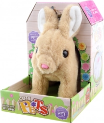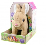 Pluszowy królik na baterie. Królik skacze, wydaje dźwięki i macha ogonkiem. Zasilanie 2 bateriami AA (brak w zestawie). Wymiary królika ok. 15 × 19 × 7,5 cm. Wymiary opakowania ok. 13 × 19 × 18 cm (służy jednocześnie jako domek). Wiek 3+