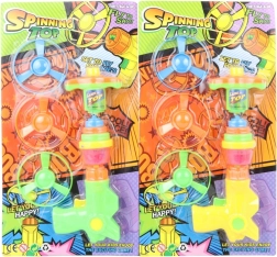 Rozkręć zabawę pistoletem bateryjnym, który wystrzeliwuje wirniki w powietrze i ucieszy każdego małego miłośnika ruchu. Dzięki prostej obsłudze dzieci szybko opanują działanie i będą się cieszyć bezpiecznym lataniem wirników w domu i na zewnątrz. W komplecie także kolorowy bączek dla dodatkowej porcji zabawy.