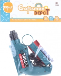 Zabawna dziecięca wiertarka na baterie z zestawem akcesoriów dla małych majsterkowiczów od 3 lat. Zawiera plastikową wiertarkę na baterie, nakładki do wkręcania, wiertło, śruby i nakrętki oraz inne dodatki. Zasilanie 2× AA (brak w zestawie).