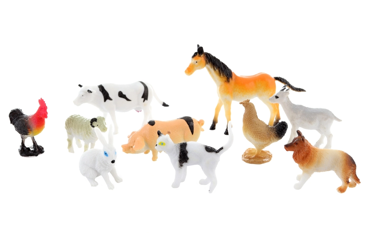 • Zawartość opakowania: koń, pies, kot, kura, kogut, krowa, baran, koza, świnia, królik (łącznie 10 szt.)