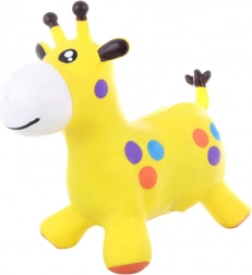Wesoła żółta żyrafa z kolorowymi kropkami zachęca do ruchu i zamienia każde skakanie w radosną zabawę.
