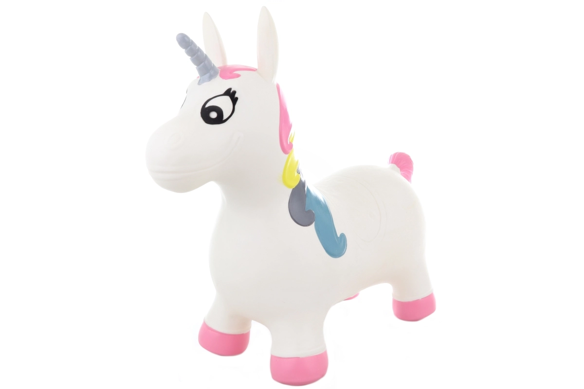 Urocza gumowa skakanka w kształcie jednorożca zapewnia dzieciom godziny aktywnej zabawy, a jednocześnie wspiera równowagę i motorykę. Dzięki kompaktowym wymiarom i stabilnej konstrukcji jest idealna do harców w domu i w ogrodzie. W zestawie znajduje się pompka do szybkiego napompowania, udźwig do 50 kg oraz niskie siedzisko dla bezpiecznego wsiadania nawet dla najmłodszych.
