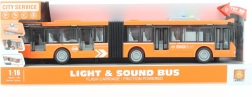 Pomarańczowy przegubowy autobus zachwyci każdego małego miłośnika komunikacji miejskiej. Dzięki efektom świetlnym i dźwiękowym podczas zabawy wygląda realistycznie i pobudza wyobraźnię. Solidne plastikowe wykonanie zapewnia trwałość i długą żywotność przy codziennym użytkowaniu.