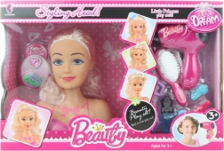 Głowa do czesania, suszarka na baterie, grzebień, spinki i inne dodatki