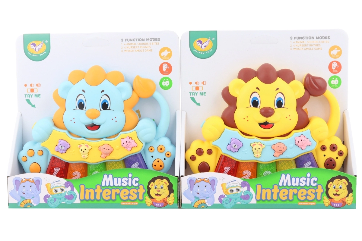 Plastowe pianinko w kształcie lwiątka, które gra i wydaje dźwięki zwierzątek. Idealna zabawka dla małych dzieci od 12 miesięcy.