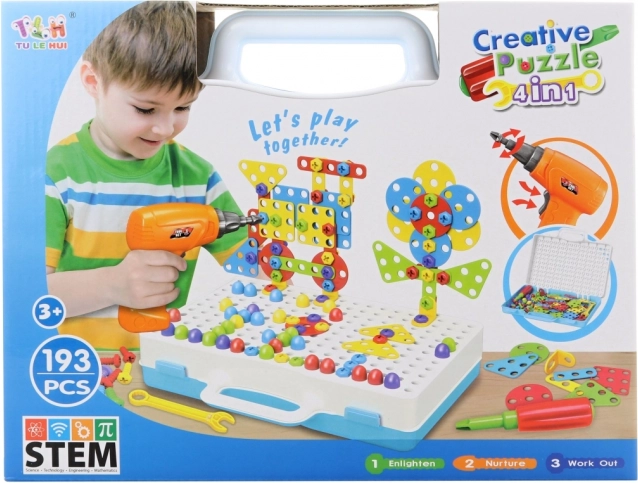 Zabawny i kreatywny zestaw konstrukcyjny na śrubki z elektryczną wiertarką dla dzieci od 3 lat oferuje łącznie 193 elementy do budowy najróżniejszych modeli. W komplecie znajduje się wiertarka na baterie, śrubokręt oraz praktyczna plastikowa walizka do przejrzystego przechowywania. Nie brakuje także instrukcji ułatwiającej start oraz mnóstwa możliwości rozwoju motoryki małej, kreatywności i logicznego myślenia.