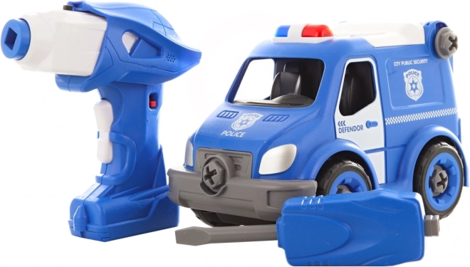 Zabawny i kreatywny policyjny samochód do skręcania z pilotem rozwija małą motorykę i wyobraźnię. Dzieci łatwo złożą pojazd za pomocą śrubokręta lub wiertarki, wyjmą silniczek z wiertarki i włożą go do auta, które następnie jeździ do przodu i do tyłu. Nie brakuje efektów dźwiękowych, solidnego wykonania i atrakcyjnego policyjnego wzornictwa dla dzieci od 3 lat.