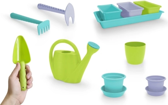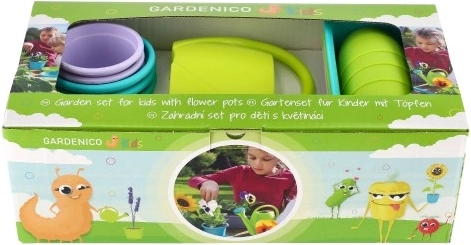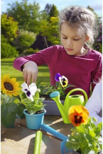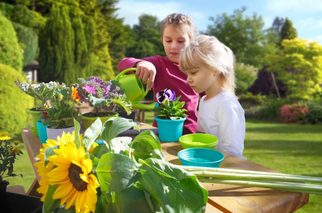 Za pomocą tego zestawu dzieci mogą nauczyć się podstaw ogrodnictwa i jednocześnie bawić się na świeżym powietrzu, uprawiając własne rośliny w kolorowych doniczkach.