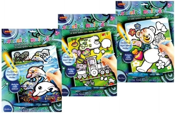Sposób użycia: Otwórz magiczny pędzelek, napełnij go wodą i zamknij. Następnie delikatnie przetrzyj białe części obrazka i obserwuj, jak kolory ożywają.