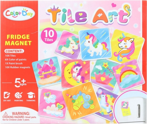Odkryj zabawny zestaw dla dzieci do wykonywania magnesów na lodówkę. W opakowaniu znajduje się 10 porcelanowych płytek, 10 magnesów, 6 farbek oraz pędzelek – wszystko, czego dzieci od 5. roku życia potrzebują, aby tworzyć własne, oryginalne dekoracje.