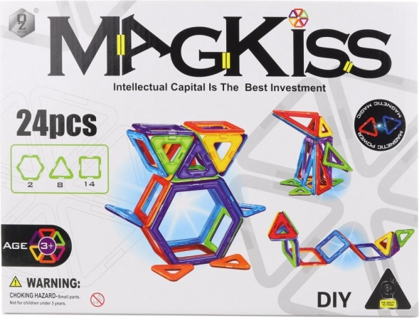 Wypróbuj magnetyczną układankę MagKiss, która oferuje nie tylko zabawę, ale także wspiera rozwój i kreatywność Twoich dzieci. Zestaw zawiera 24 elementy w kształcie trójkątów, kwadratów i sześciokątów. Dzięki prostocie i uniwersalności układanka nadaje się do tworzenia dowolnych fantazyjnych form.